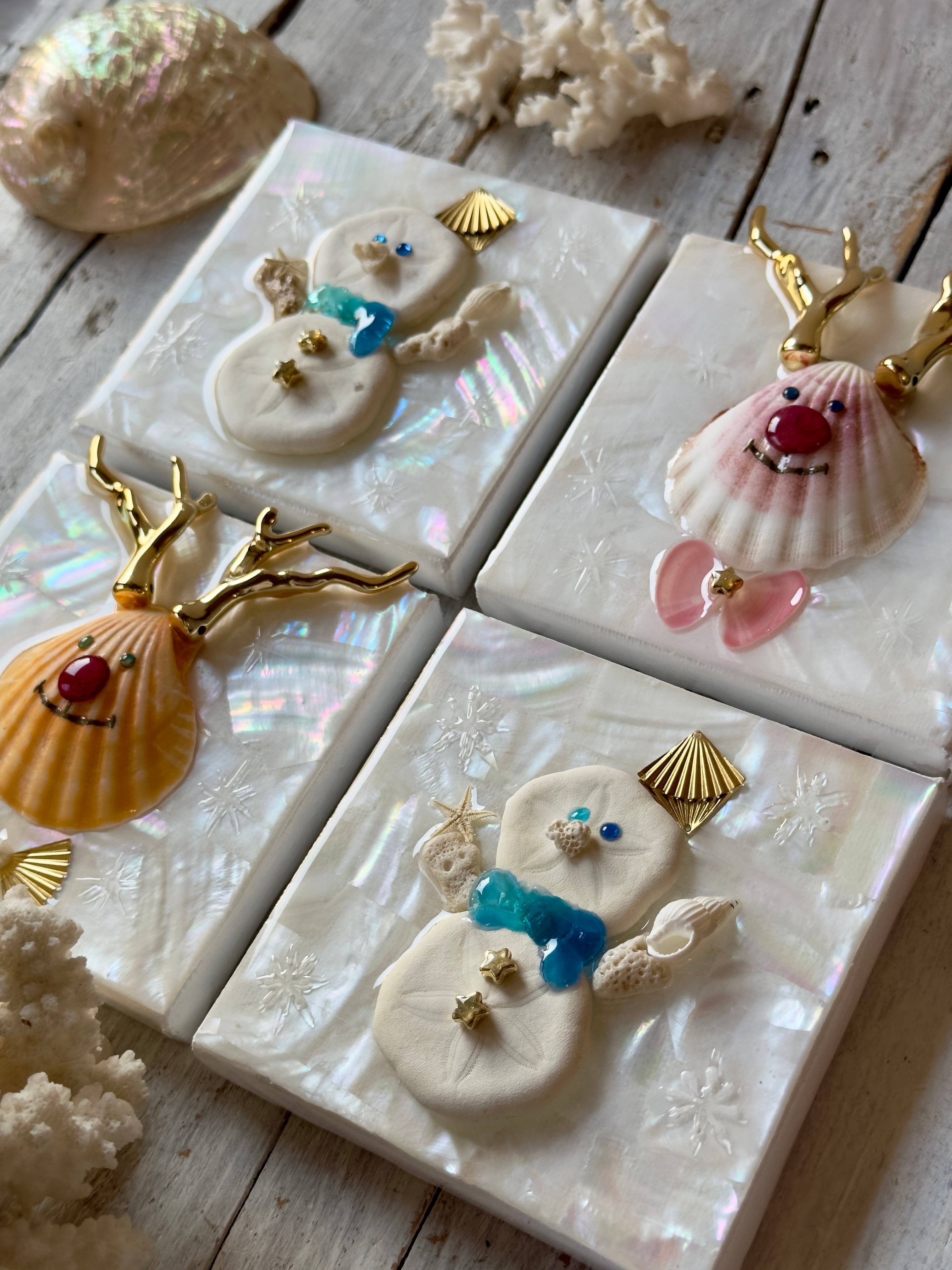 Winter Shell Art 〜雪だるま〜(10×10cm)【現品販売】
