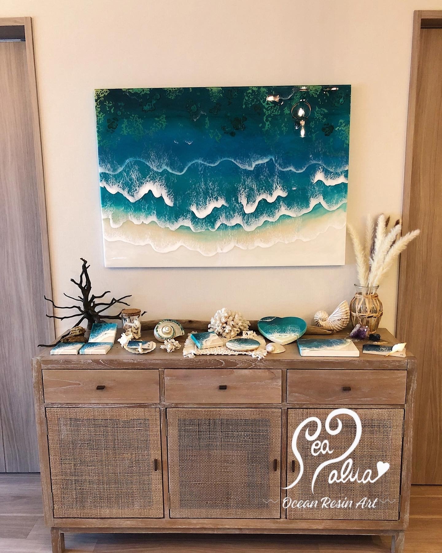 海と波のレジンアートでリゾート気分をお楽しみください。
