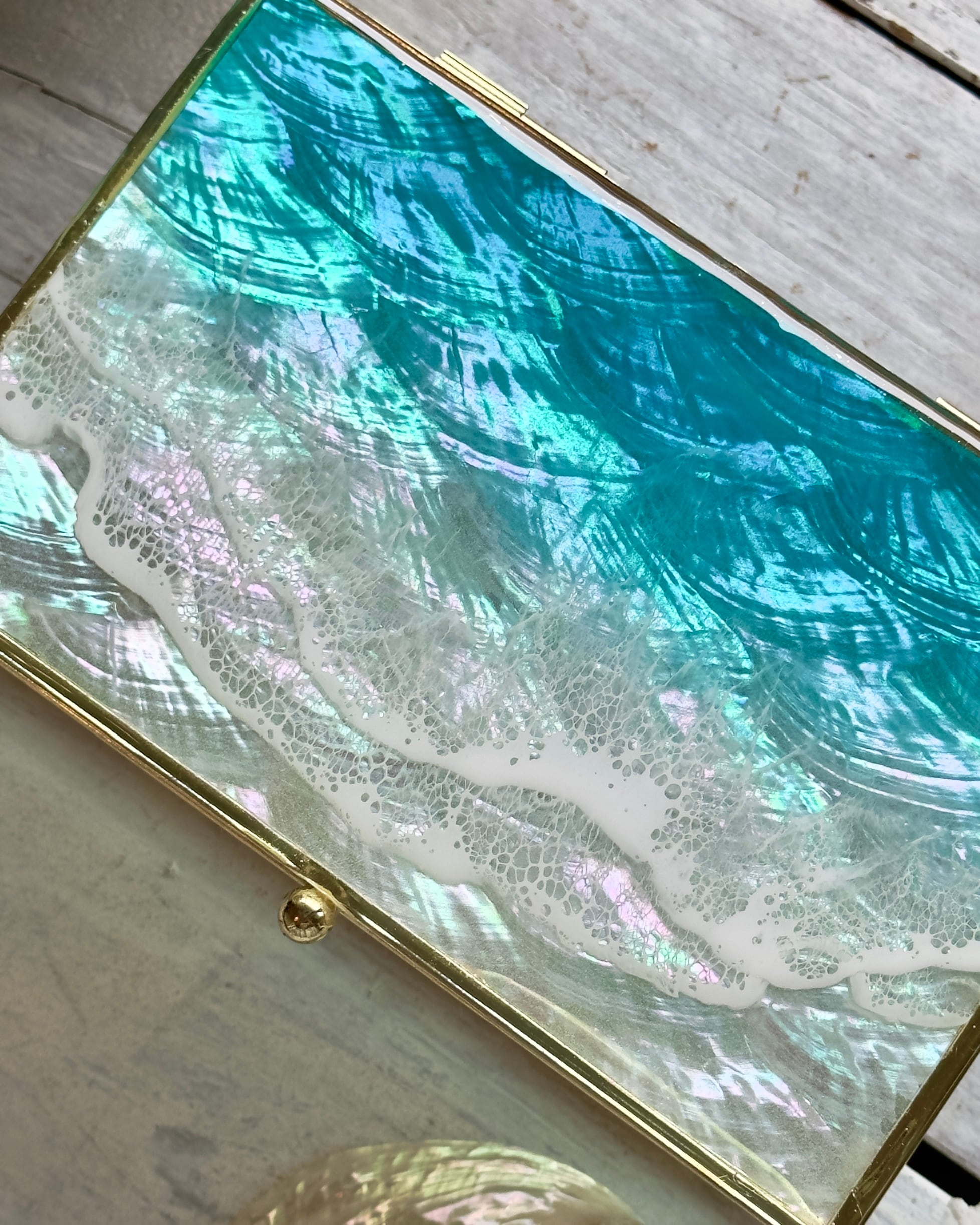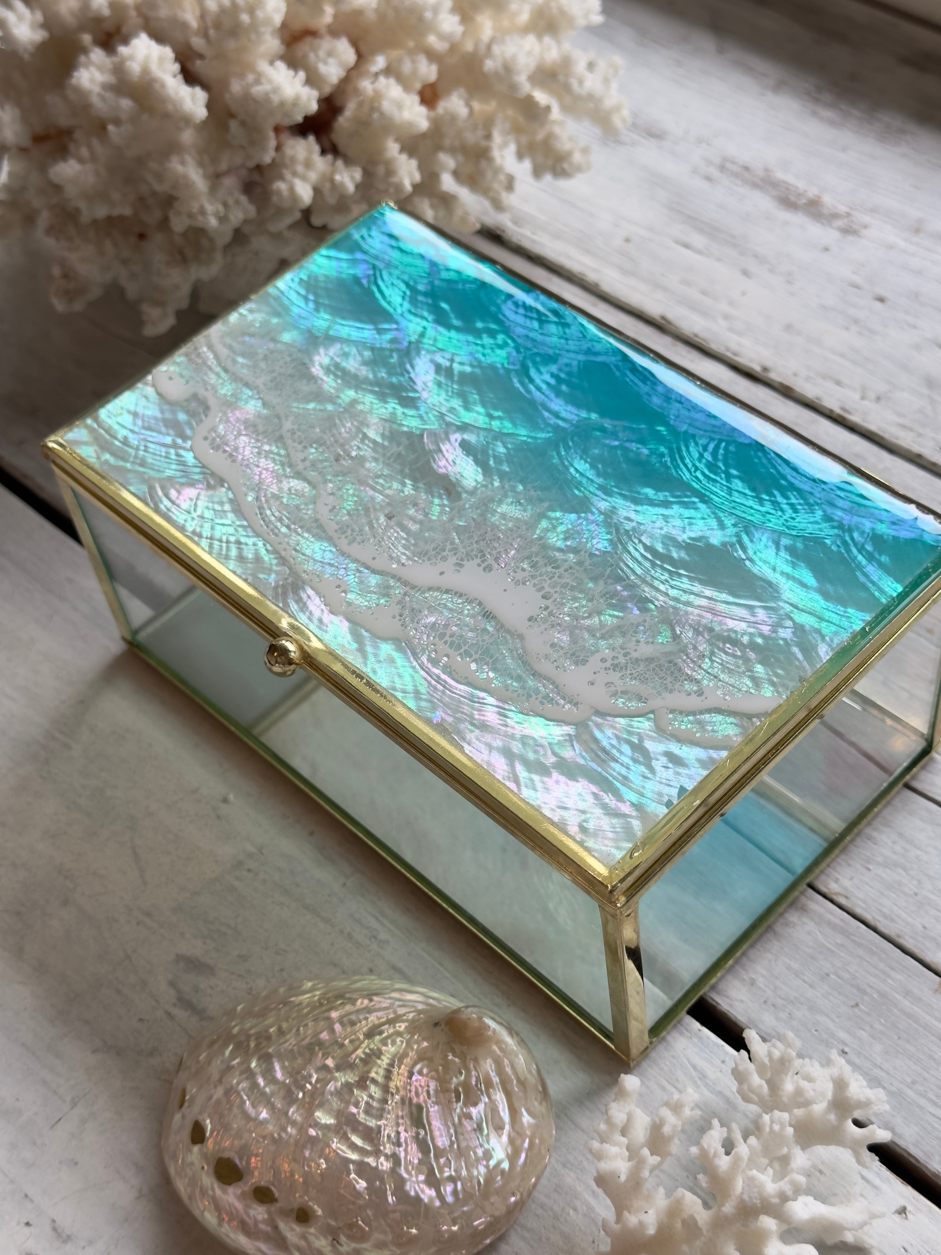 <受注生産>海のガラス BOX ターコイズブルー【Sea Naluaオリジナル − Mermaid Shell Art −】