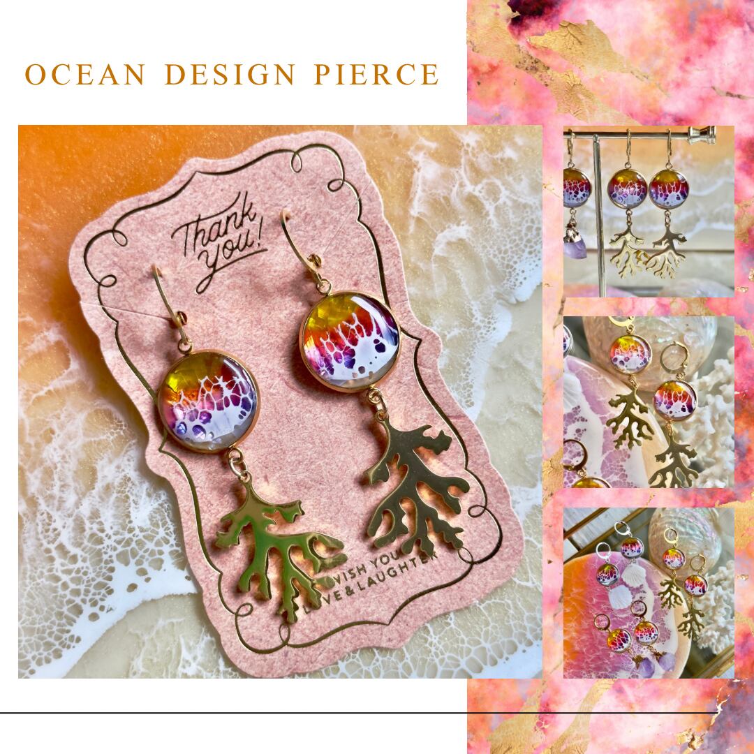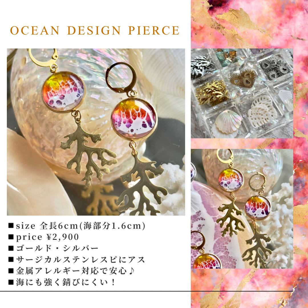 珊瑚のオーシャンデザインピアス(ocean design pierce)サージカルステンレス/サーフピアス/ビーチアクセサリー/海ピアス