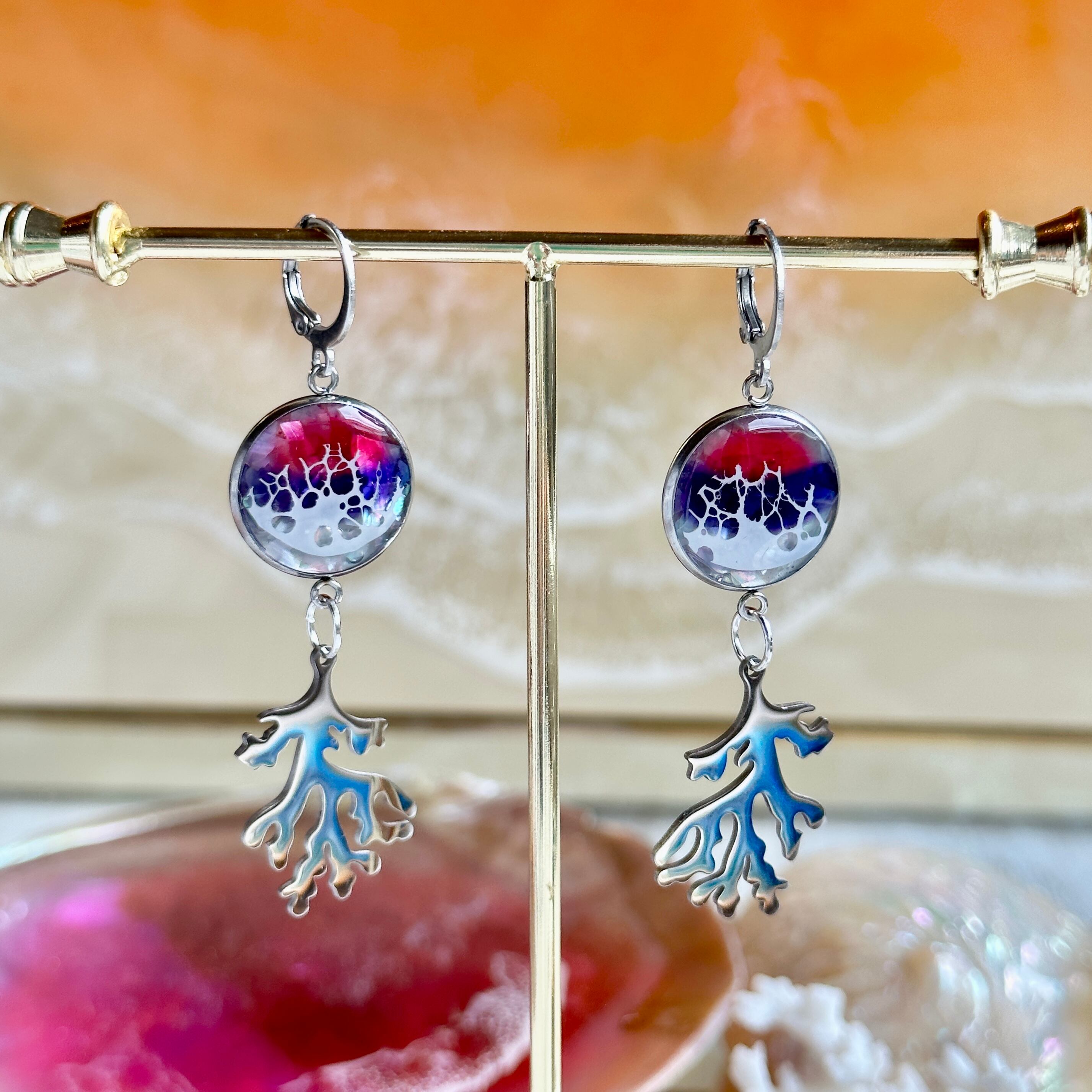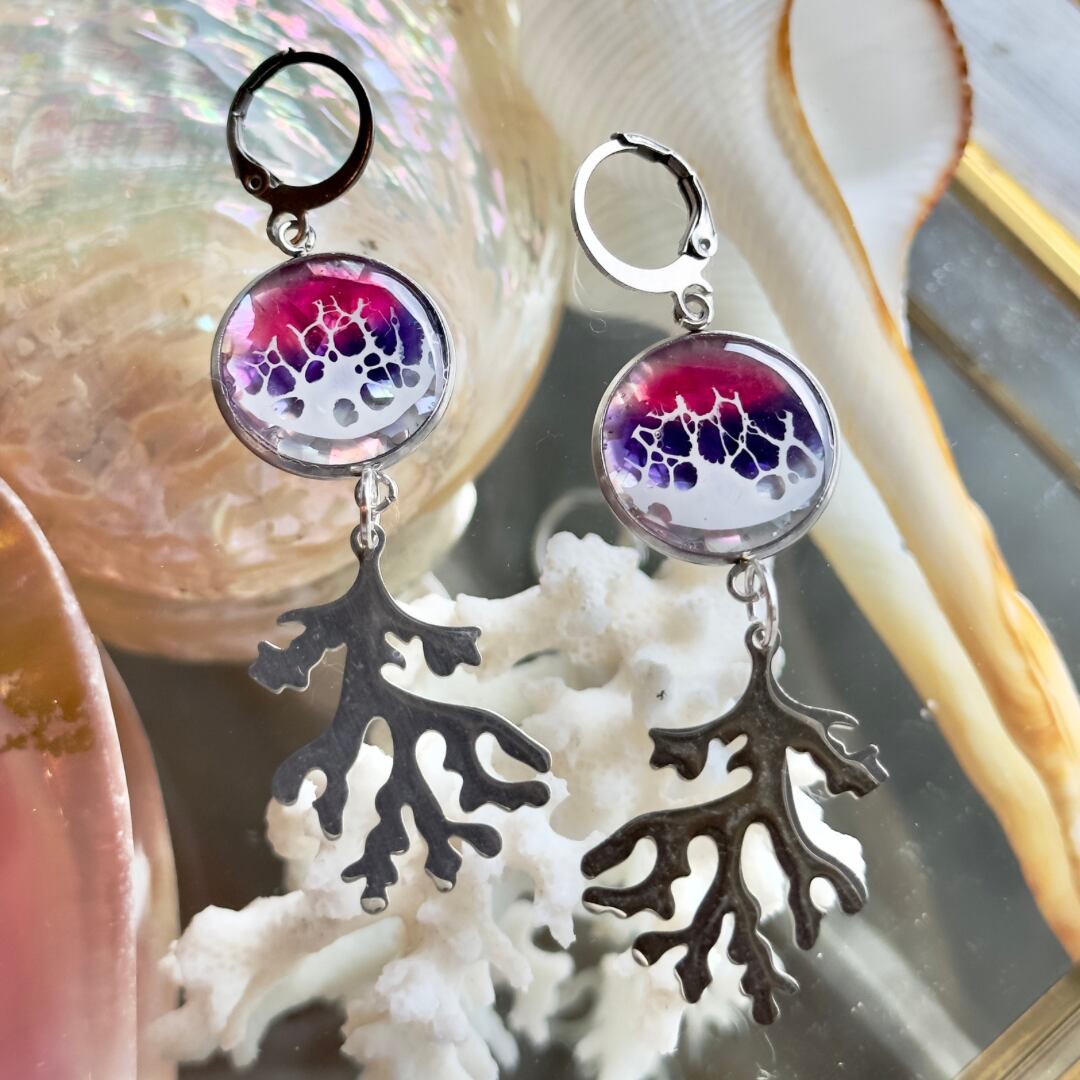 珊瑚のオーシャンデザインピアス(ocean design pierce)サージカルステンレス/サーフピアス/ビーチアクセサリー/海ピアス