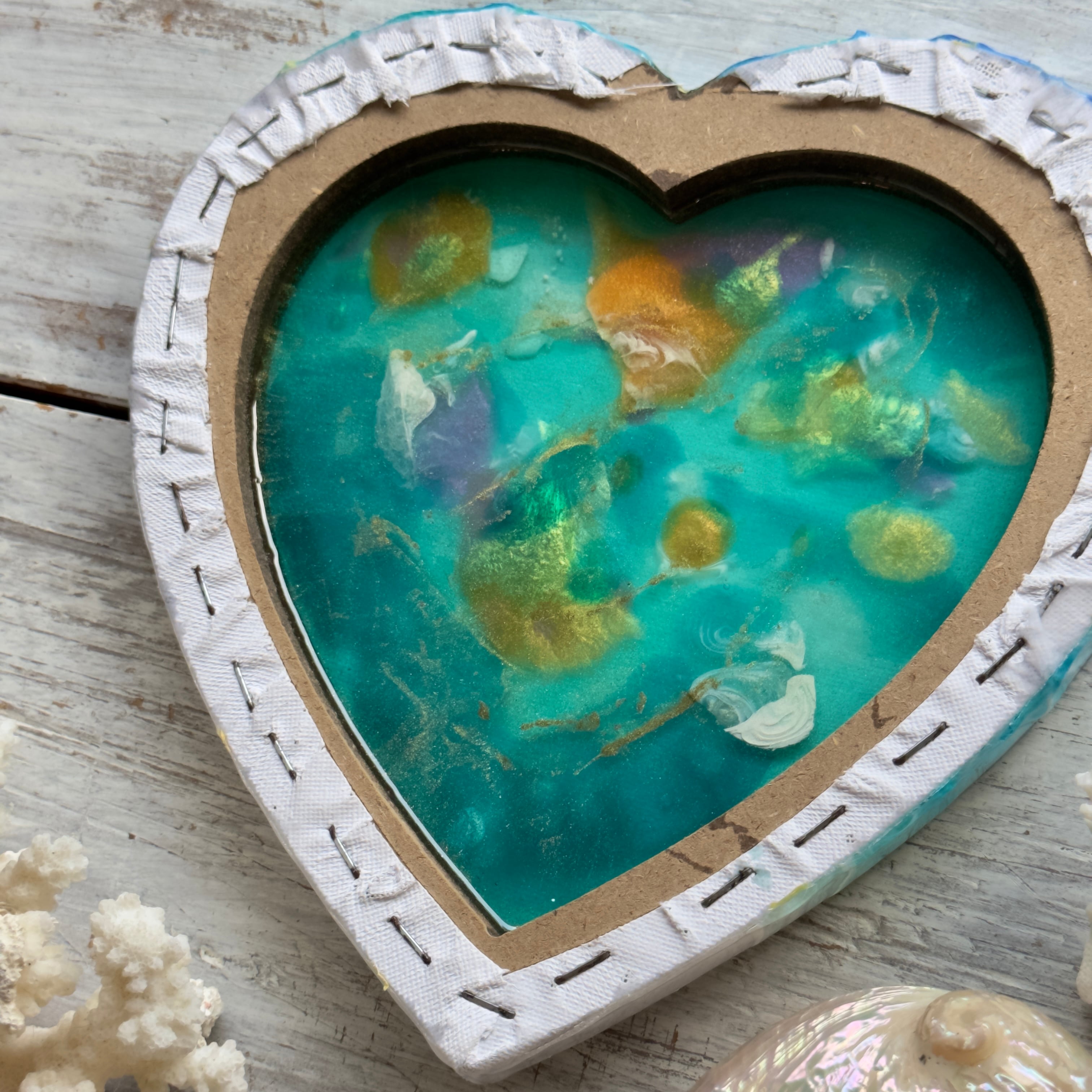 海の壁掛けハートパネル(Ocean heart panel )波アート/海のインテリア/サーフインテリア/レジンアート