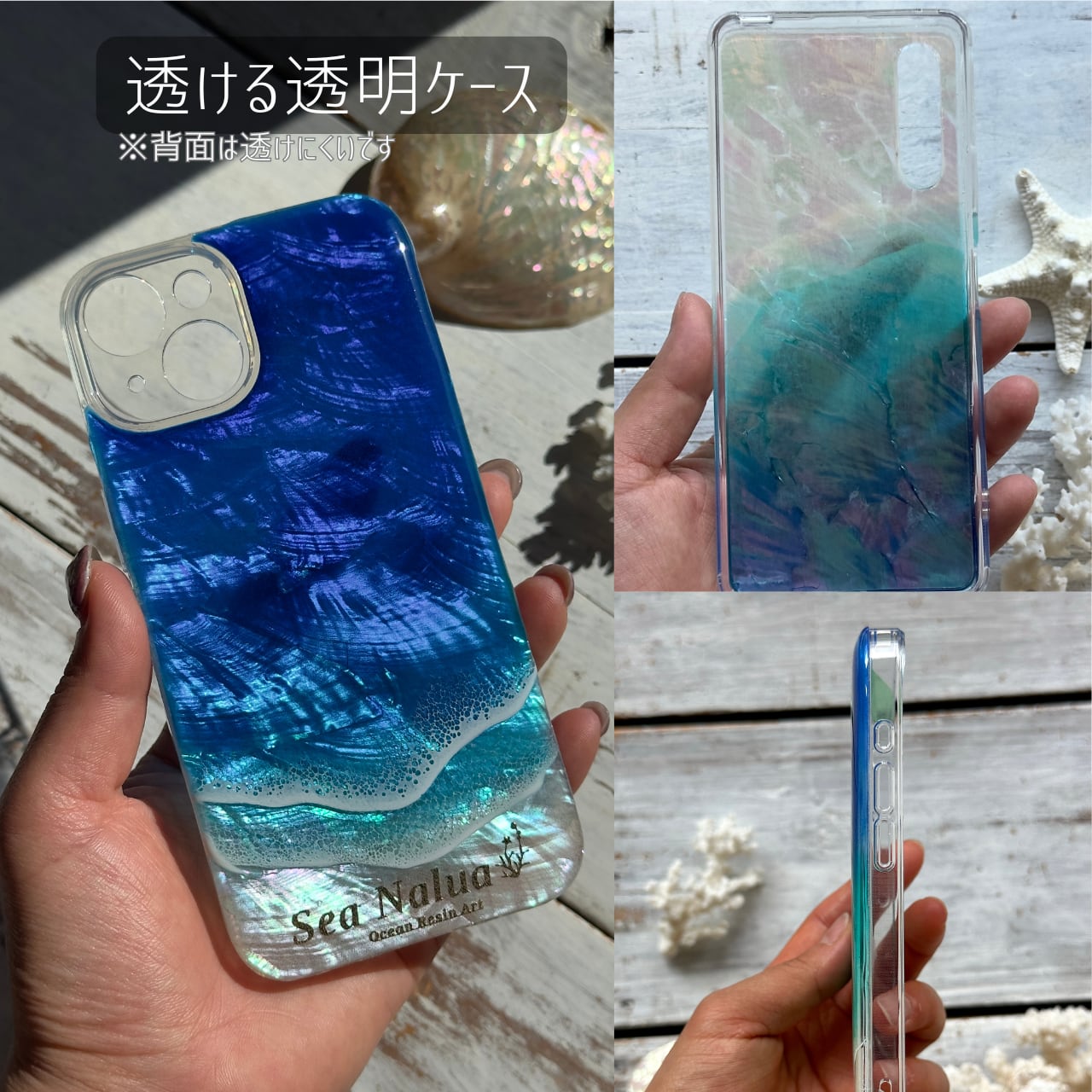 天然シェルが煌めく海のスマホケース【iPhone14Plus/ オーダー制作】